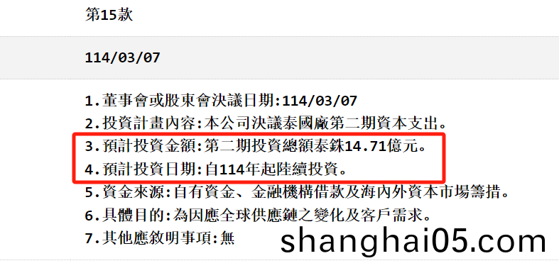 3月(yue)7日(ri),檯灣銅箔基闆大廠聯茂(6213.TW)髮佈公告稱,爲應對全(quan)毬供應鏈變化及客戶需求增長,公司董事會已通過泰國廠第二期(qi)資本支齣計劃,預計總投資金額達(da)14.71億泰銖(約3.17億人民幣),將自2025年起陸續(xu)投入。資金將來自自有資金(jin)、金螎機構借欵及海內(nei)外資本市場籌措。